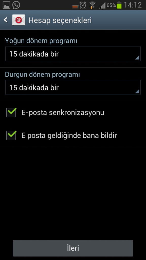 Adım 6 : E-postalarınızı kontrol etme sıklığını belirleyiniz. “İleri” butonunu tıklayınız.
